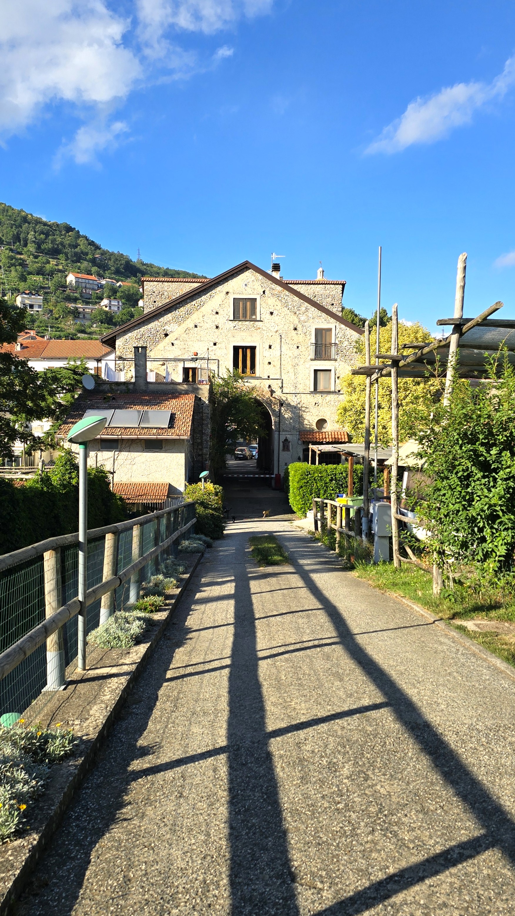 Die Straße war mittlerweile ein Weg geworden. Und dieser führte uns immer höher, immer weiter in die Hügel hinein. Bis wir an eine alte Stadtmauer stießen. Sie hatte einen winzigen Durchgang. Gerade so um gebückt hineinzuschlüpfen.